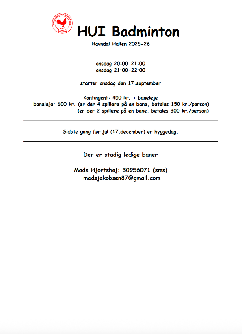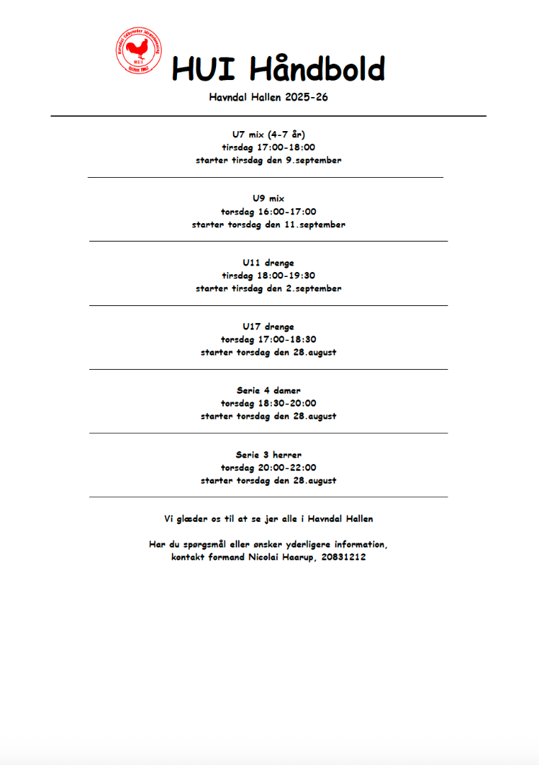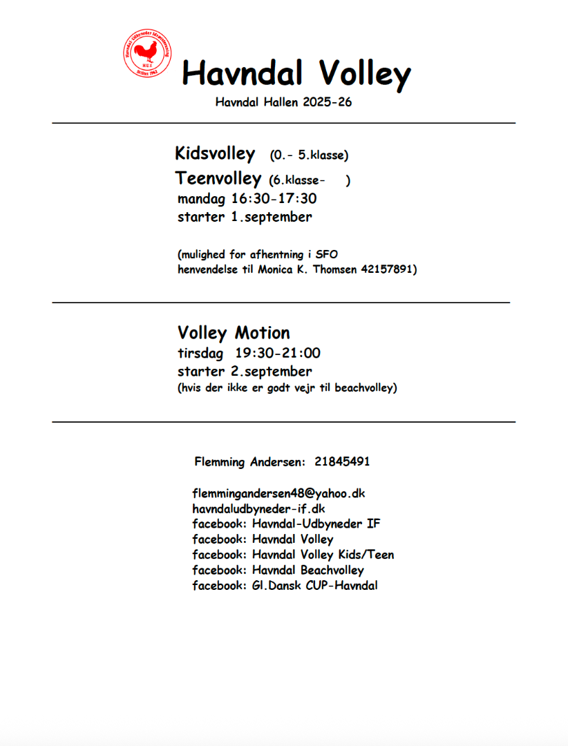 Havndal Udbyneder Idrætsforening - CVR: 22273418 - ©️ Der tages forbehold for alle rettigheder